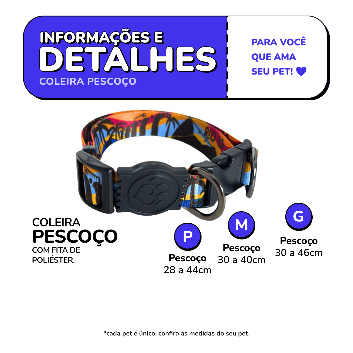 Recomendamos que meça o seu pet antes da compra para garantir o tamanho ideal.