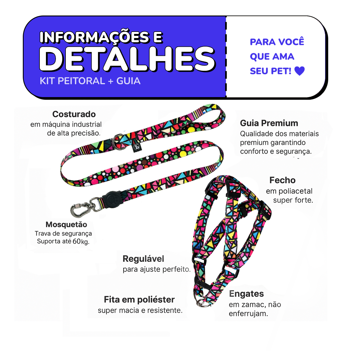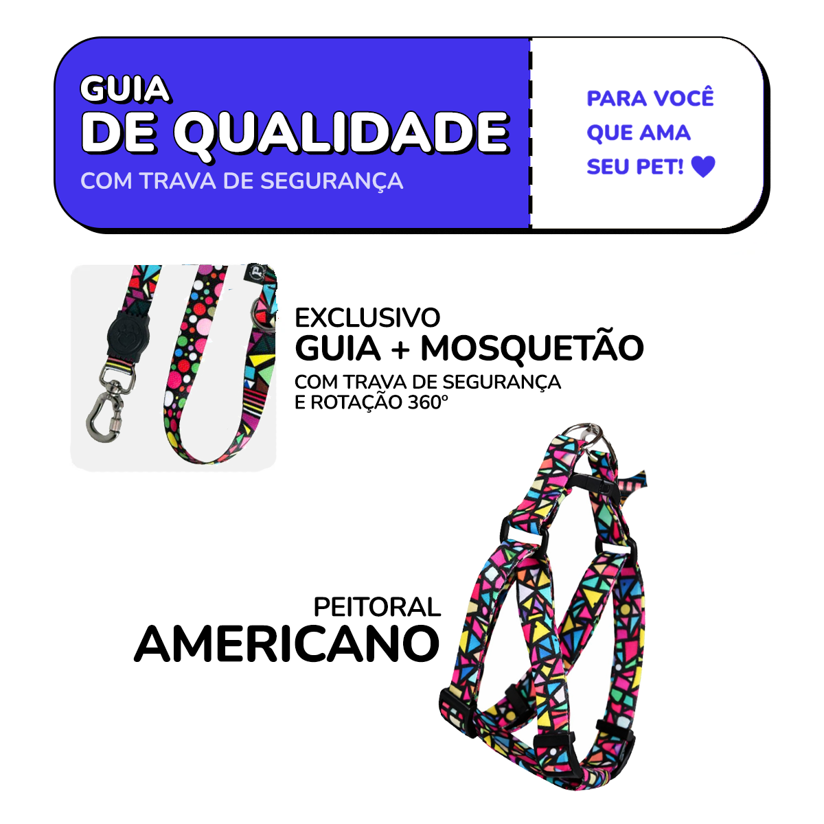 Coleira Peitoral Modelo Americano com Guia – Segurança e Conforto para os Passeios do Seu Pet!
